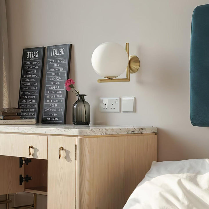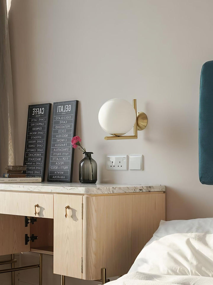 The Blown Glass Opal Glass Wall Lamp is a sleek and contemporary wall light that combines metal and glass materials, creating a perfect blend of durability and aesthetic appeal. Whether used in hallways, living rooms, or bedrooms, this wall lamp provides a soft and diffused lighting effect, creating a tranquil and calm atmosphere.