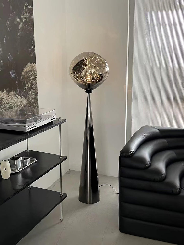 Our Lava Cone Floor Lamp offers enchanting, subtle, and dreamlike illumination. When switched on, its mesmerizing melting hot blow glass effect takes form, while when off, it gives off a mirrored effect to captivate your home.