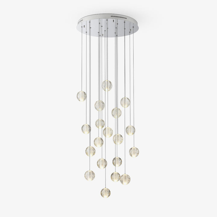 The Crystal pendant lamp interacts with the imperfections of the glass to create a rich halo of light. Visually quite subtle, the gains tremendous strength when clustered in random formations along horizontal and vertical applications. Popular residential and commercial applications include kitchens, restaurants, bedrooms and closets, hallways, patios, staircase illumination, foyers and lobbies, and other large indoor and outdoor configurations in private and public spaces.