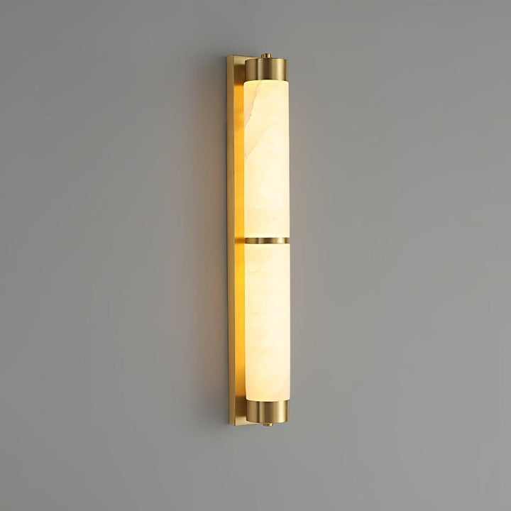 The Cylindra Alabaster Brass Wall Light is a testament to the elegance of simplicity and the beauty of natural materials. Crafted from the finest brass and adorned with a cylindrical alabaster shade, this wall light exudes a warm, ambient glow that accentuates the unique veining and creamy texture of the alabaster.
