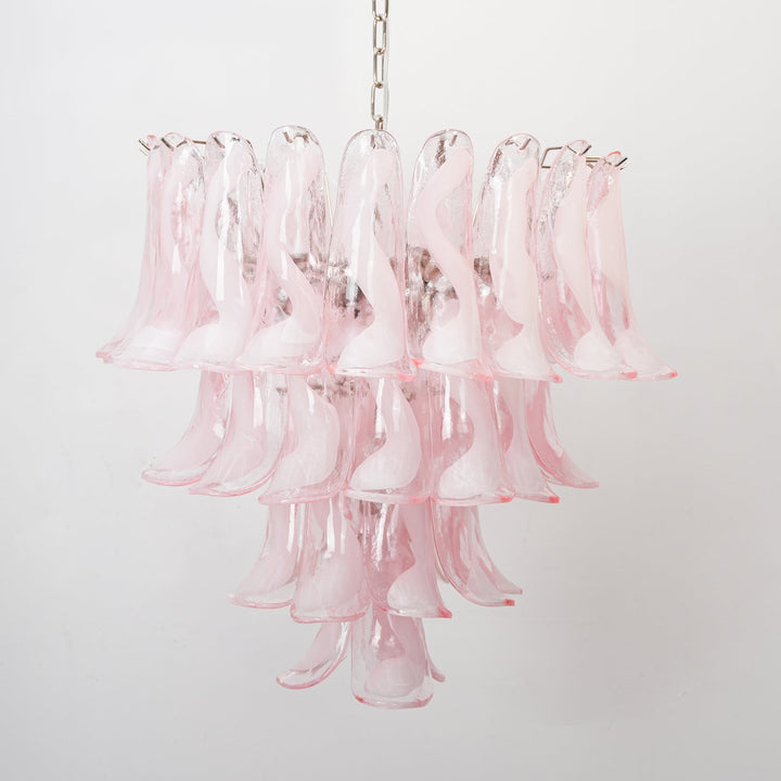 The Florentine Lily Murano Chandelier captures the delicate elegance of flower petals in motion. Each handblown Murano glass element curves gently like a calla lily in bloom, cascading in radiant layers that shimmer with soft opalescence. Available in romantic blush pink or pure alabaster white, this chandelier is both sculptural and serene—turning any space into a glowing garden of light.