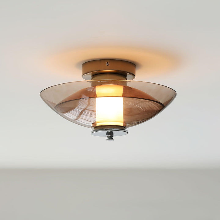 The amber glass diffuses the light into a warm, inviting hue, casting a cozy glow over your living space. This playful yet sophisticated pendant lamp serves as an eye-catching centerpiece that can effortlessly elevate the aesthetic of any room, from a stylish living area to a welcoming entryway. Whether it's switched on to brighten up your evenings or serving as a sculptural piece by day, the Flying Saucer Chrome Wall Light is a dazzling blend of retro charm and modern-day chic.