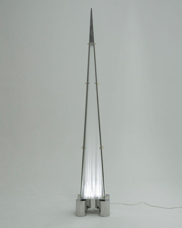 'Fragment' Floor lamp used Patterned glass that can distort the direction of light, and create a special effect, inspired by archetype of a western gothic church and the mysterious atmosphere created by the colorful windows in the church, transforming architectural language into his lighting series 'fragment'.