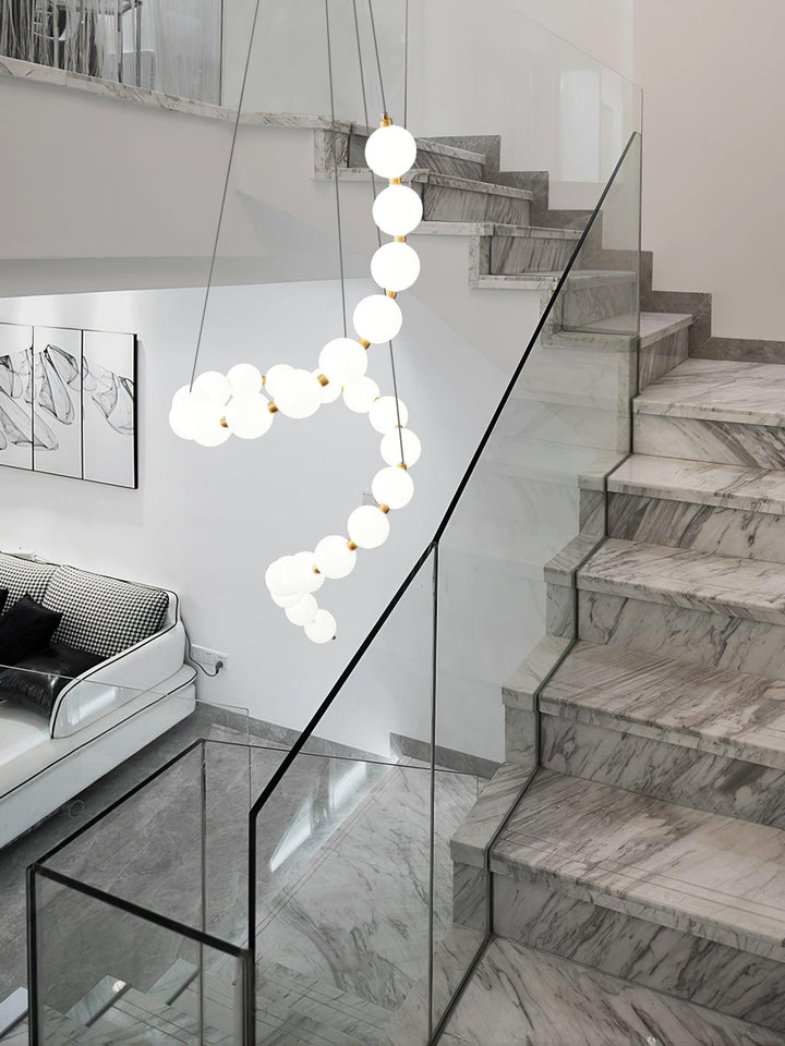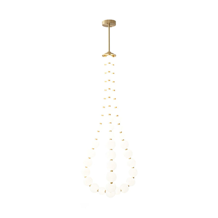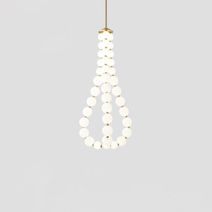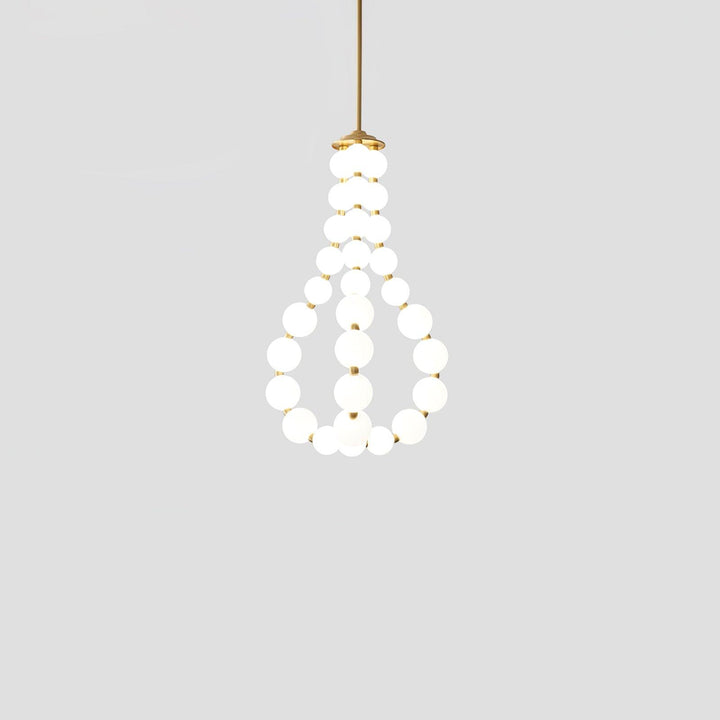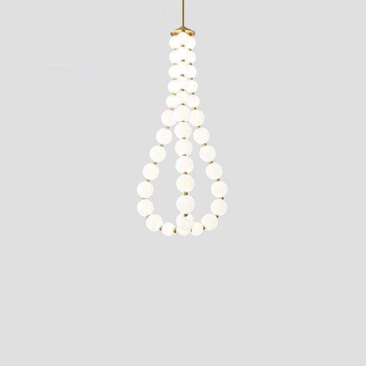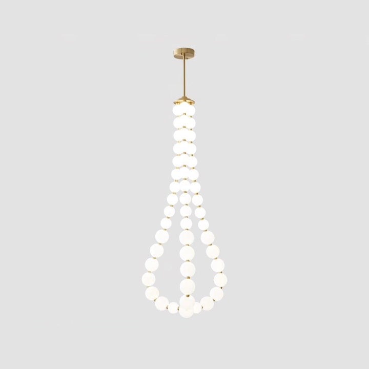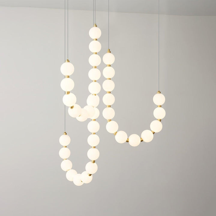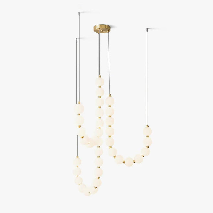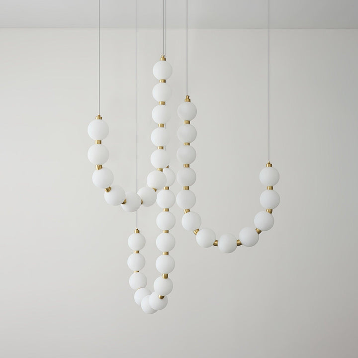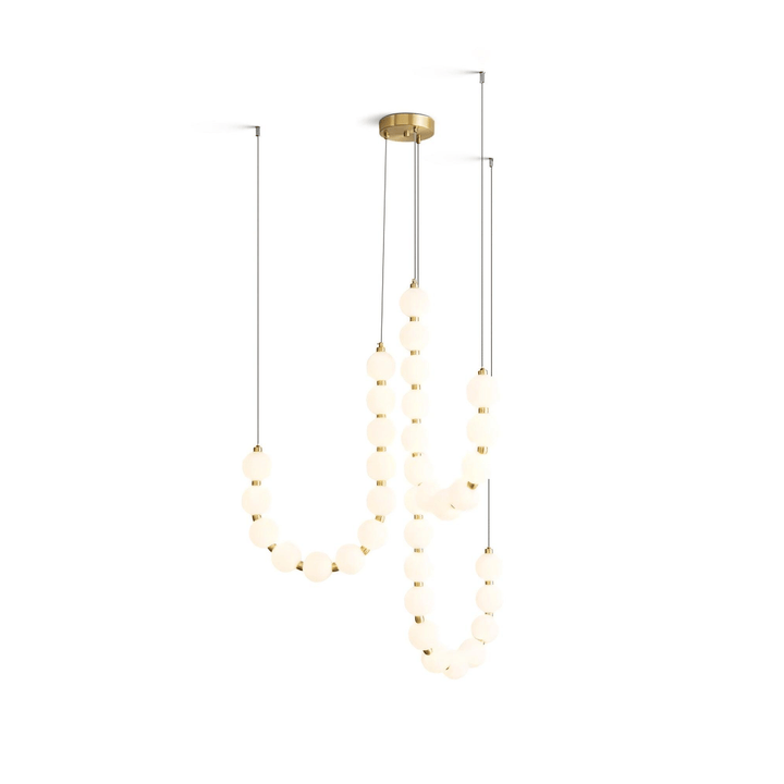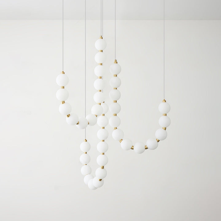 This stylish Glass Pearl Necklace Chandelier illuminates any space with a brass-constructed base and white glass orbs. Its unique design will draw admiration and attention, merging a distinctive style with universal and timeless appeal. Its unique lighting forms will highlight the interior of your home, creating a warm, cozy atmosphere for gatherings and quality time with family.