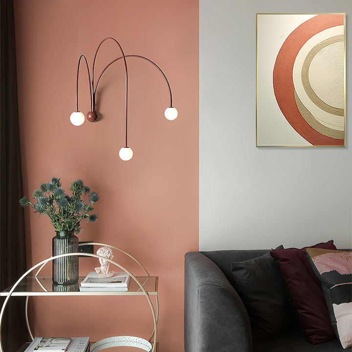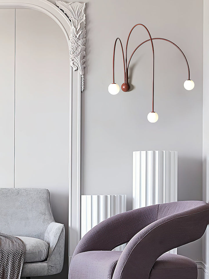 The Gran Finale Wall Lamp from Vakkerlight redefines wall lighting with sculptural elegance. Three frosted glass globes are poised on sweeping metal arcs, resembling celestial bodies in motion. Its artistic silhouette diffuses a warm, gentle glow, transforming walls into luminous art. Perfect for hallways, living rooms, or as an accent in modern interiors, this wall lamp is both a functional light source and a statement of contemporary design.