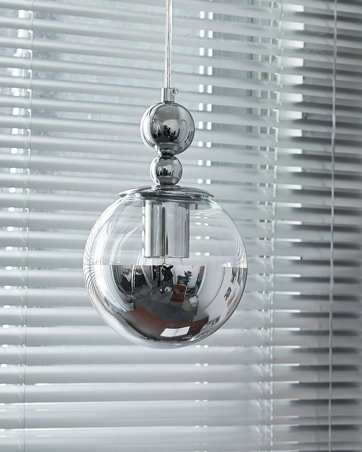 The perfectly spherical Mirrorball pendant projects an effortless sophistication in chrome and glass. The pendant's flawlessly round half chromed half clear glass shade captures the pure spirit of contemporary minimalism. Rounding out the pristine modernist aesthetic.