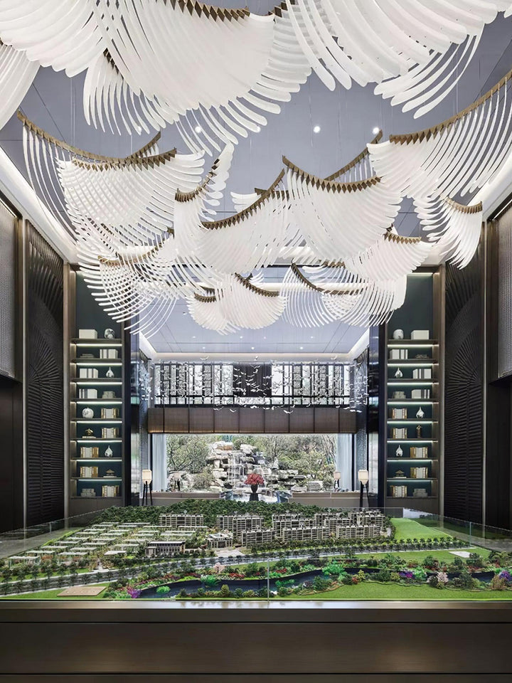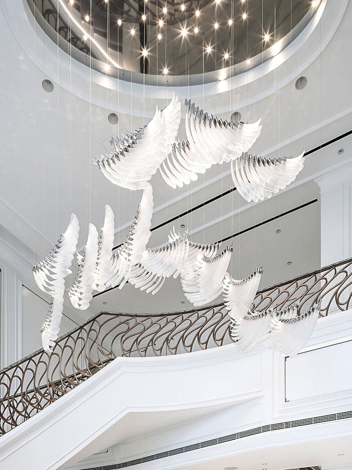 Featuring tiers of ribbed, leaf-like acrylic formations and a chrome frame, Full of structure, and sleek design, An elevated and elegant twist of classic to a contemporary statement piece.our Palmette Chandelier is sure to be a focal point in any room.