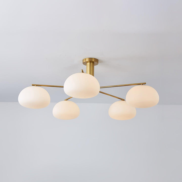 The Briette Chandelier is an elegant statement piece designed to add sophistication to any décor. Its 60s-inspired style features an alluring cross frame adorned in glossy gold and white glass globes, creating a timelessly chic look. Add a touch of timeless glamour to your space with the Briette Chandelier.