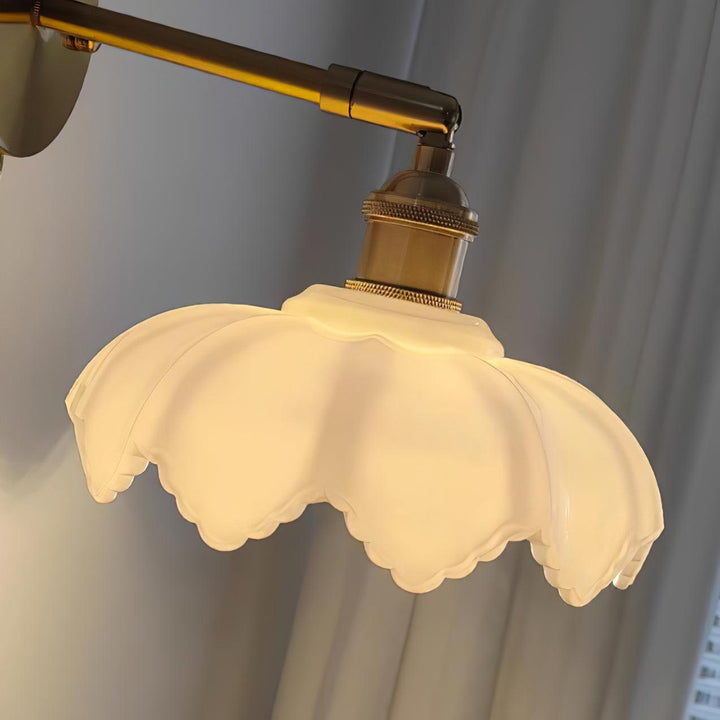 The Lotus Rotatable Wall Lamp is a stylish addition to any room. A white glass lampshade in the form of a lotus flower sits atop a golden light body, which is able to rotate up to 180 degrees. Its attractive design and practical features make it a perfect fixture for any home.
