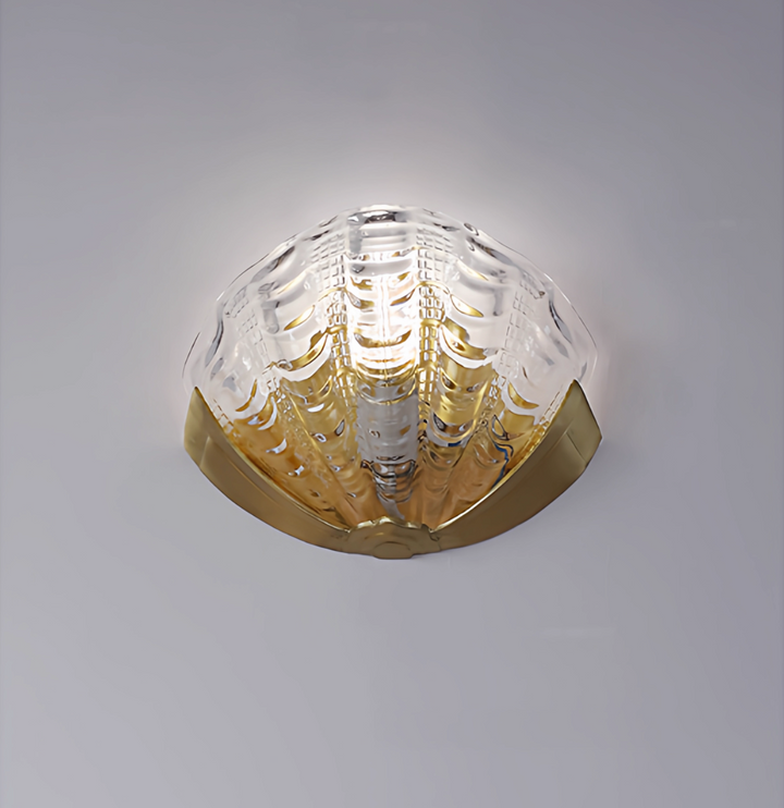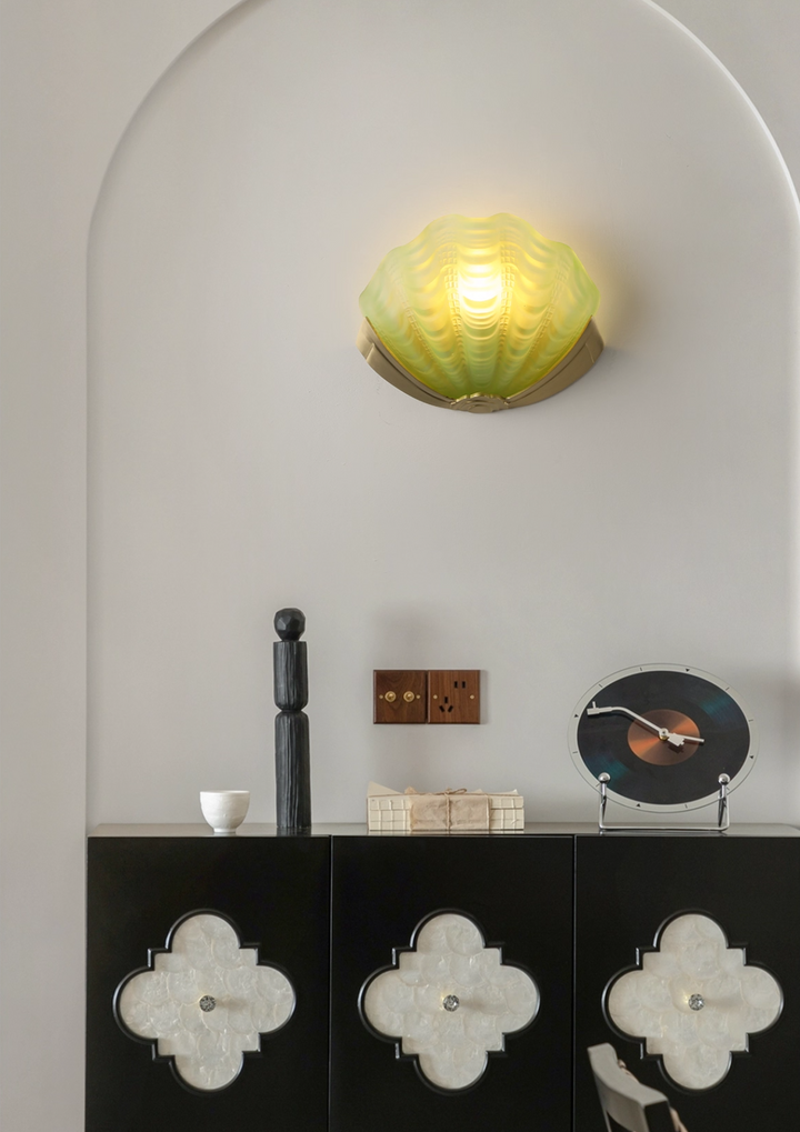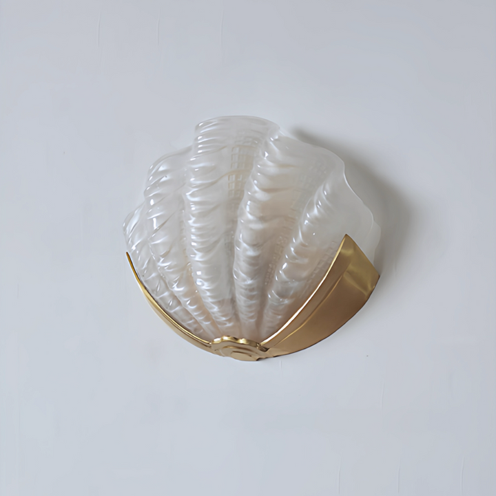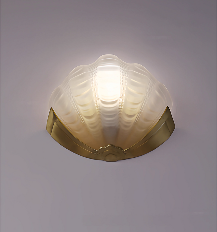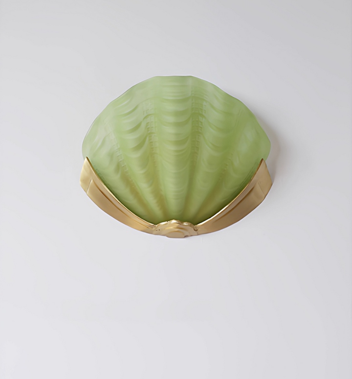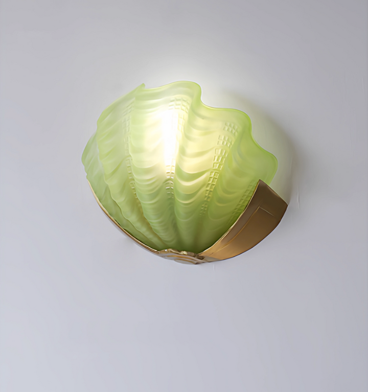 Introduce a wave of Art Deco glamour to your interiors with this exceptional wall light. Inspired by the sophisticated lines of the 1920s and the organic beauty of the ocean, the shade is meticulously crafted from a Molded, Seafoam Green Frosted Glass. The intricate scalloped and fluted texture not only replicates the delicate form of a shell but also ensures a beautifully diffused, soft ambient light.