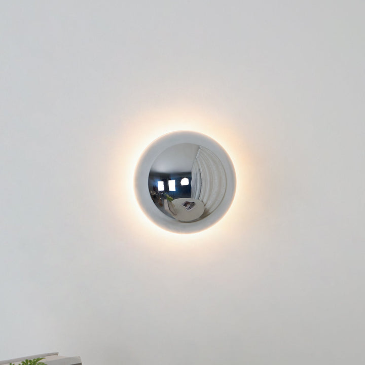 The Aurum Sphere Wall Sconce is an enchanting light fixture that epitomizes modern elegance. Featuring a glossy gold-finished sphere, it reflects its surroundings with an almost mirror-like shine, creating a dynamic and expansive effect in any space. Coated interior walls enhance reflection, turning the sconce into a charming focal point that draws the eye and illuminates the room with its radiance. Perfect for contemporary homes or chic commercial environments, this wall sconce is not only a source of light but a wall art piece that can transform an ordinary wall into an eye-catching one.