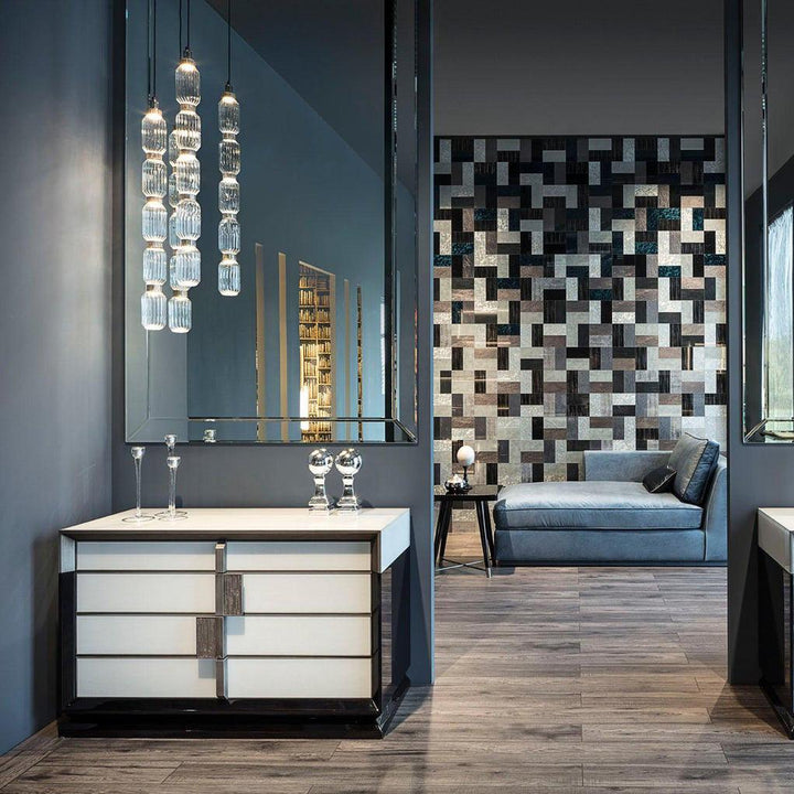 A versatile and refined ceiling lamp with a fresh and contemporary style. Fine and pure materials are arranged in special geometric shapes. It can be used alone or in combination with other models.