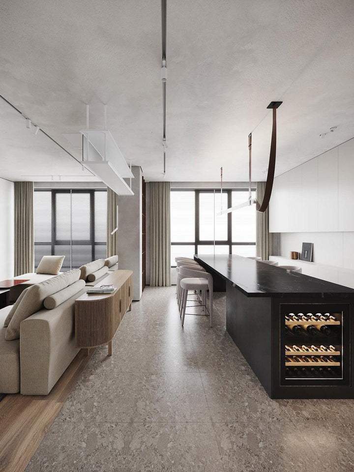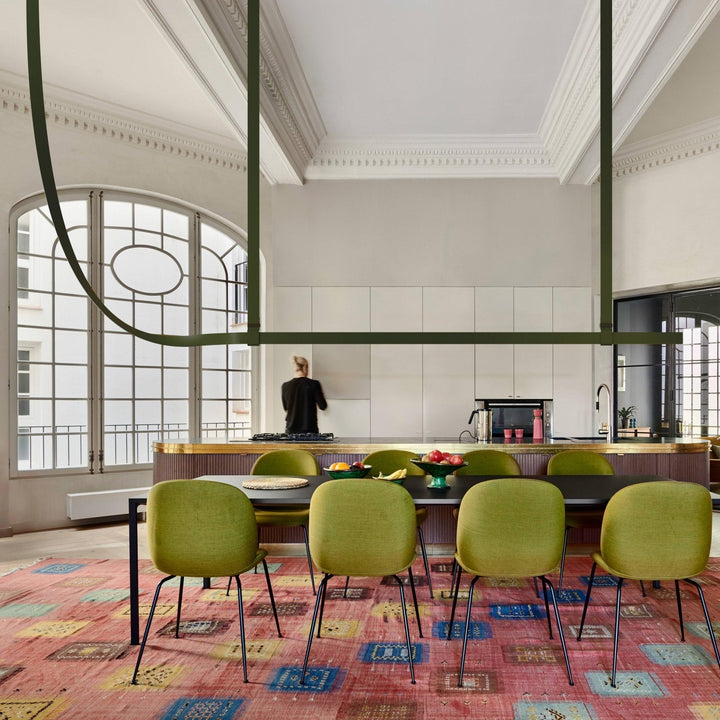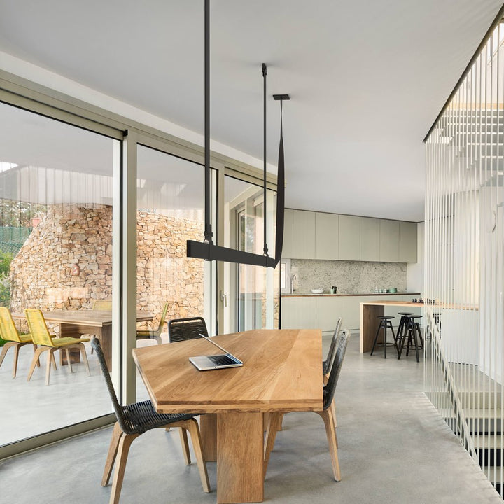This iconic profile for suspended installation features a refined leather surface developed specifically. Belt is pure flexibility, a sinuous line that creates a balance between the softness of leather and the rigidity of aluminum. The soft part is represented by the connection to the electrical network, while the rigid parts correspond to the light source, the long lines of light.