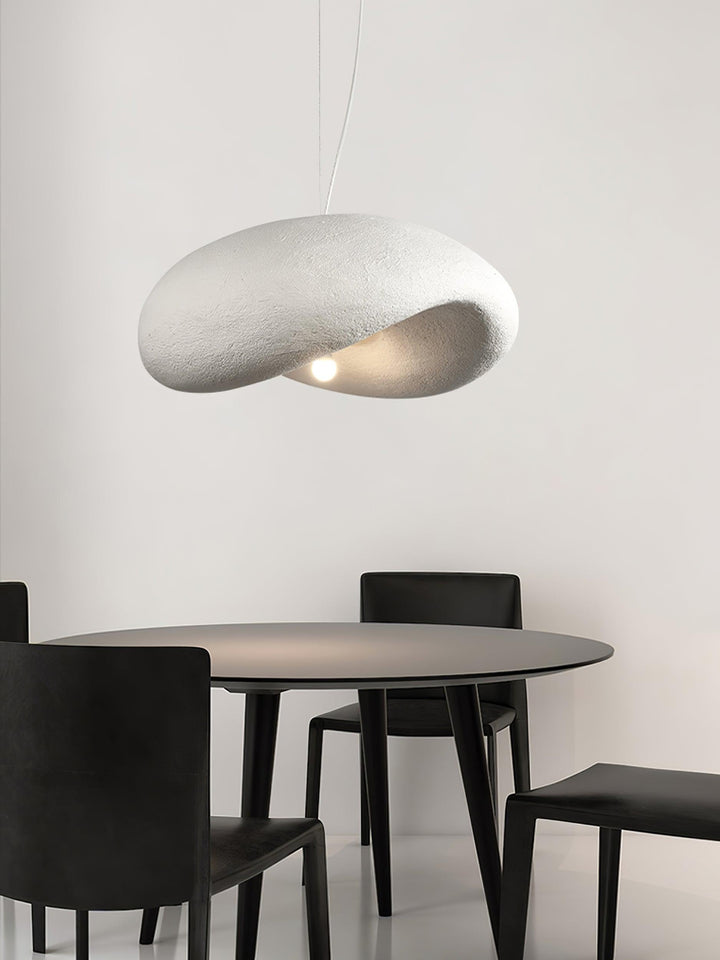 Handmade Wabi Sabi Vintage Modern Chandelier, New Japanese Resin Pendant lamp with Minimalist Organic Shape Style Retro Lamp Bedroom Kitchen Dinning Living Room. The same goes for this Wabi-Sabi Dunia pendant lamp. The illogical shape and special materials form this somewhat postmodern creation. Without conspicuous finishes, the gray or white color can better highlight the texture on its surface, setting off its texture. You might think of it as a cement chandelier, but this is made of lightweight resin and polystyrene material, and even a large size won't be very heavy. Therefore, you don't have to worry about any safety issues hanging from the ceiling.