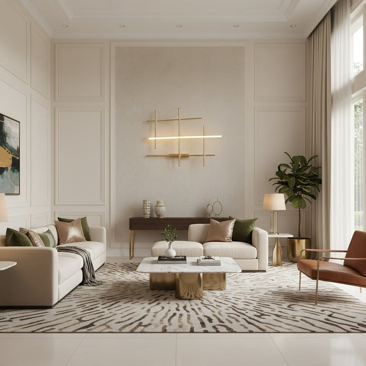 This is a Geometric Linear Wall Lamp. It features an intricate arrangement of metallic rods intersecting in a geometric pattern, with one of the rods emitting a soft, warm glow. Mounted on the wall, it combines modern art - inspired design with functional lighting, making it suitable for adding a touch of contemporary elegance to spaces like living rooms, hallways, or bedrooms.