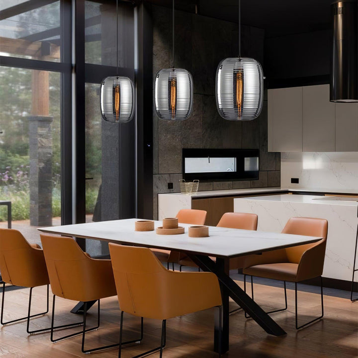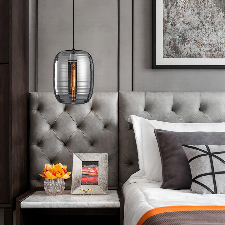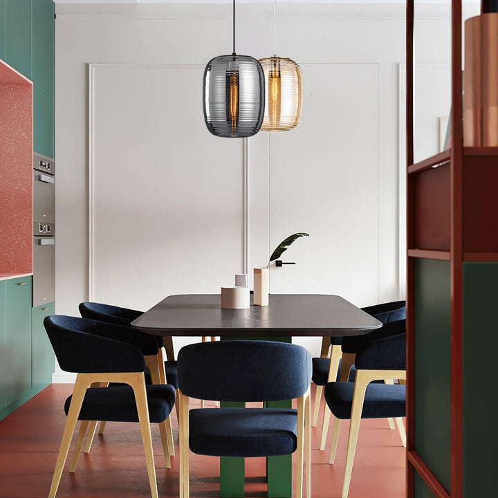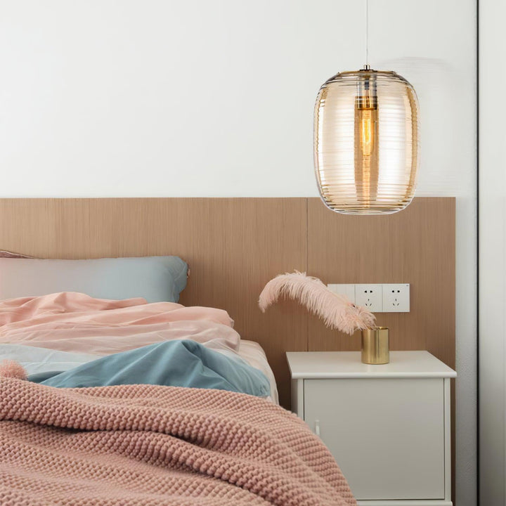 This beautiful pendant light features a translucent glass shade and rich gold finish canopy. Illuminate your favorite décor through the bold presence of this striking pendant light. Designed with contemporary style, this specialty ribbed glass shade brings attractive ambiance to your home, complementing any indoor/outdoor space.