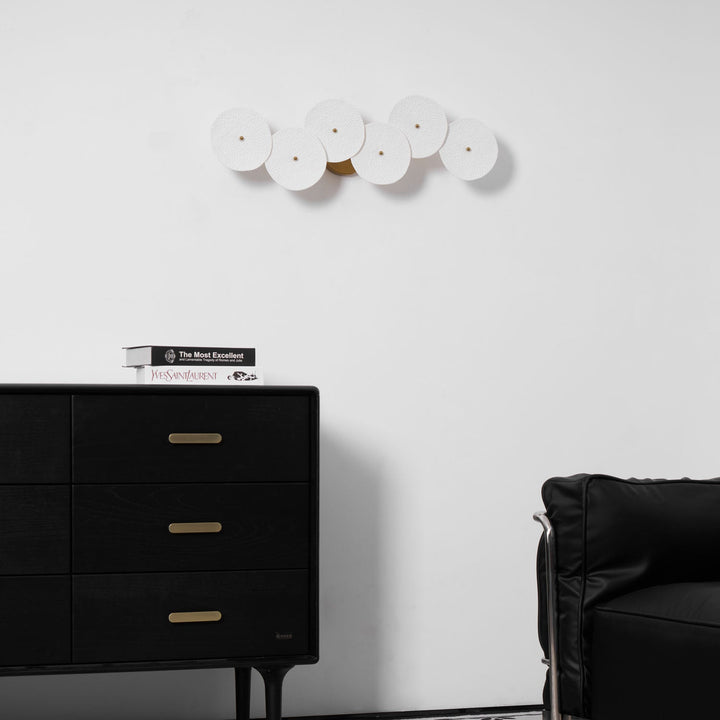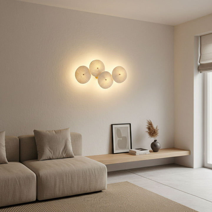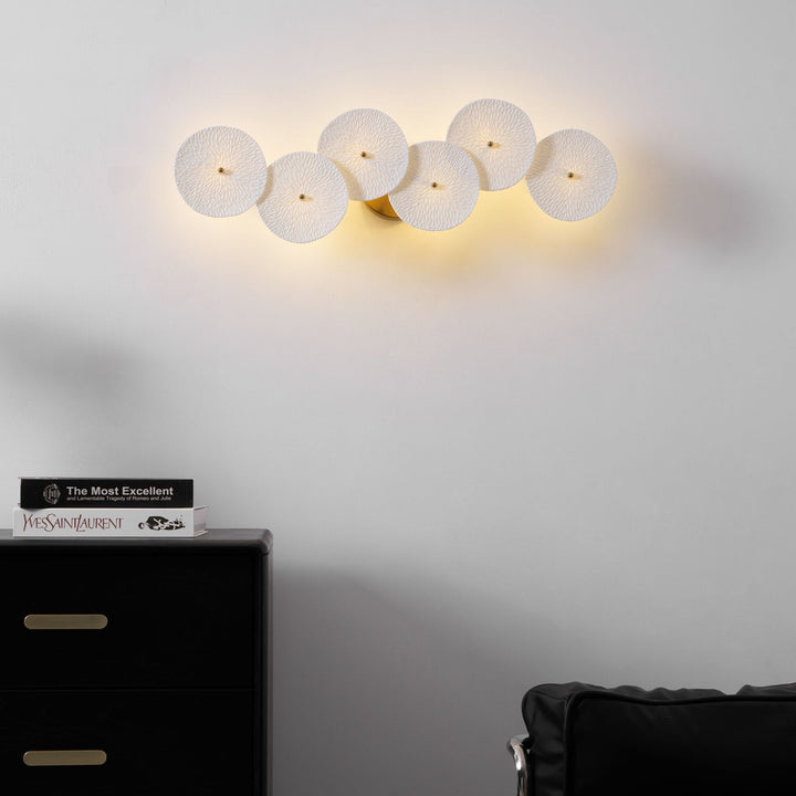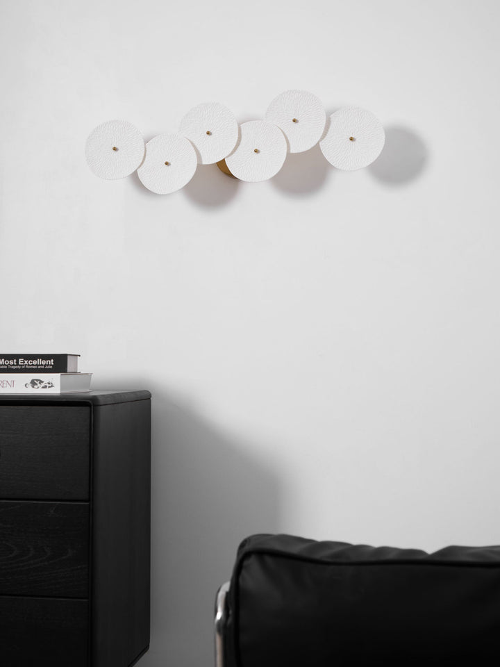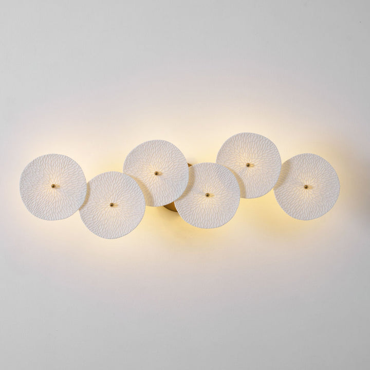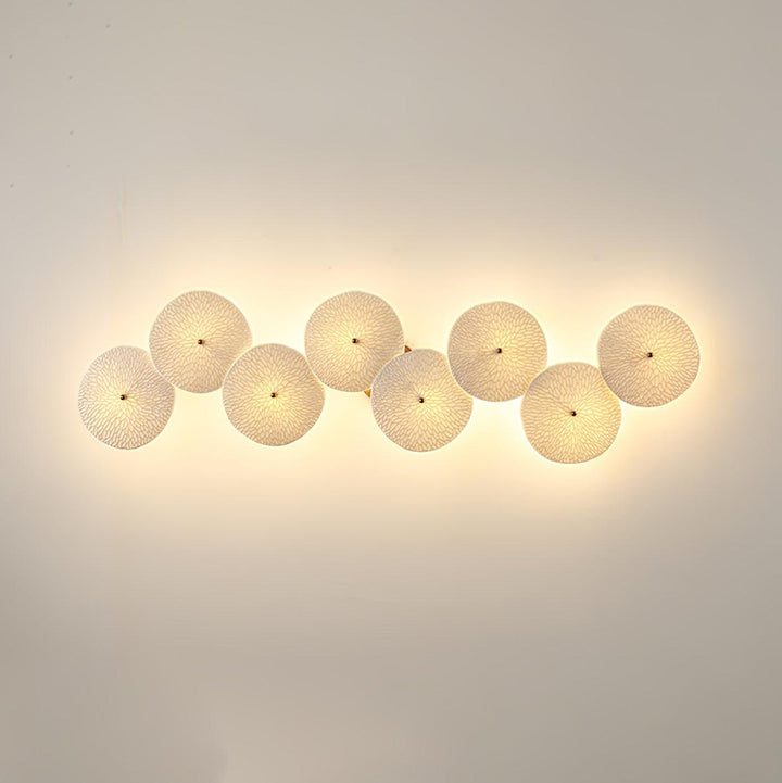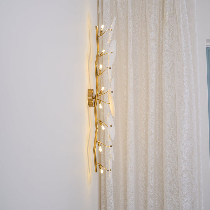 Experience the calming influence of nature with the Lotus Petal Wall Lamp. This graceful lighting fixture features a series of ceramic petals, each masterfully crafted to mirror the intricate patterns and textures found in the petals of a lotus flower. Arranged in a vertical cascade, the petals are connected by a lustrous metal spine that traces a path of beauty on your wall.