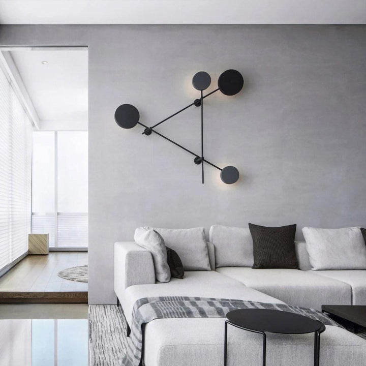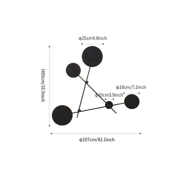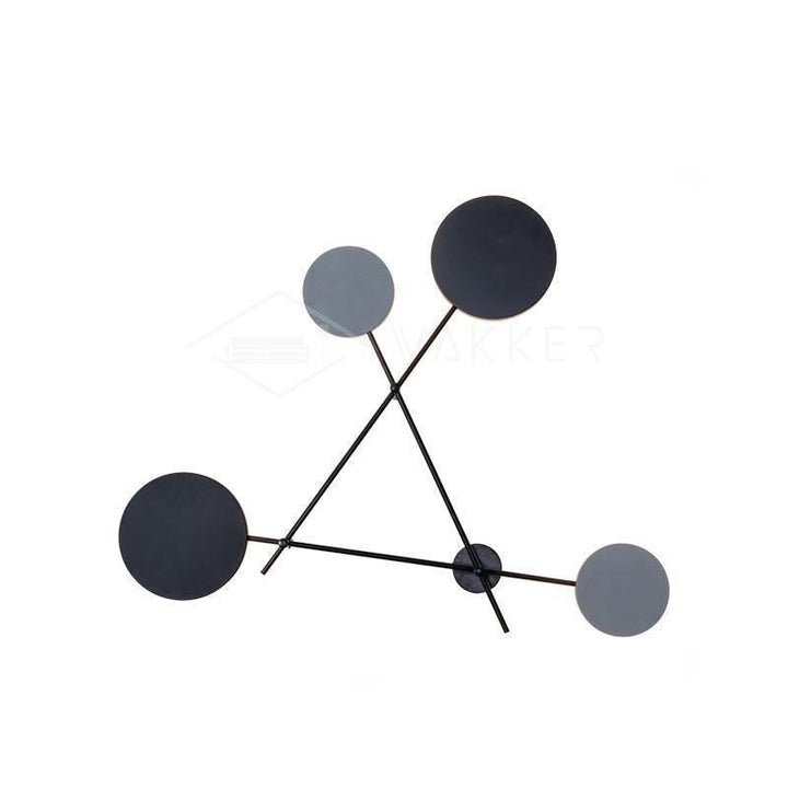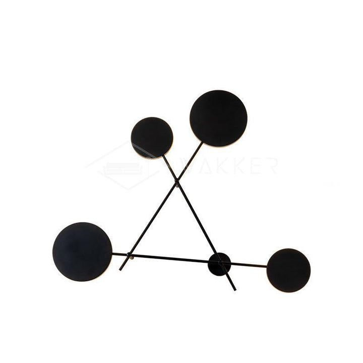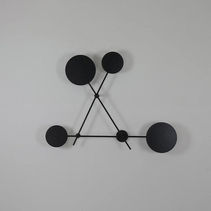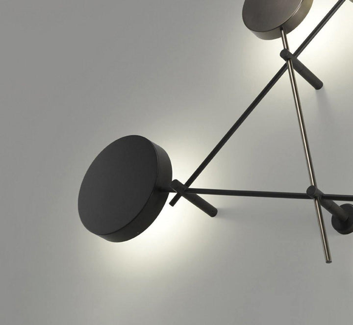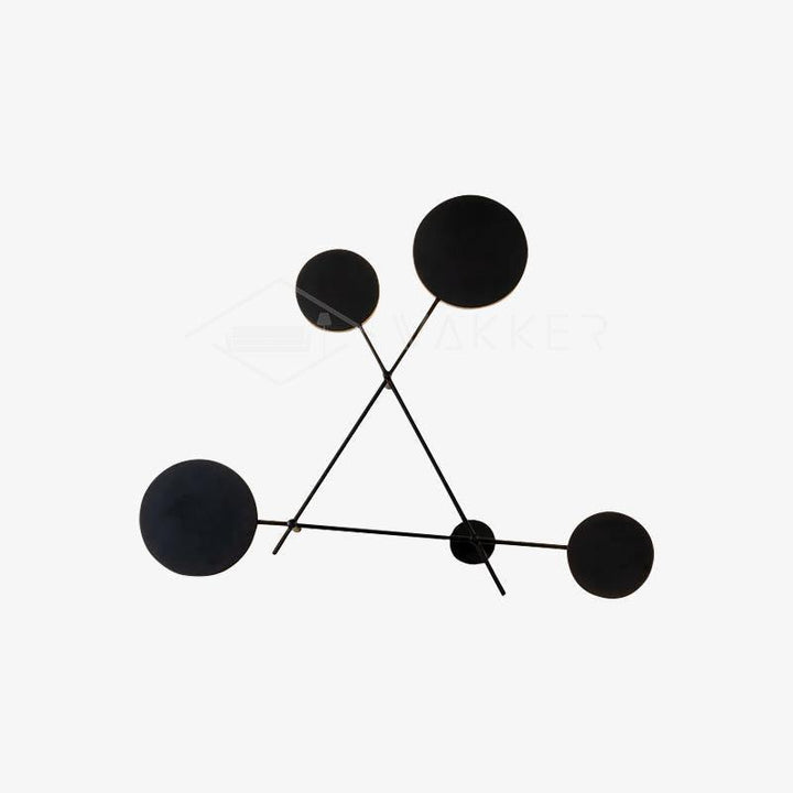 Iride is a sculpture made of lines and circles, with a geometric shape of the strong decorative impact that reminds you of Kandinsky's works. The disc creates a luminous halo similar to several eclipses. The intertwining structure is made from three discs and three bars of black metal and one disc and bar in titanium finish.