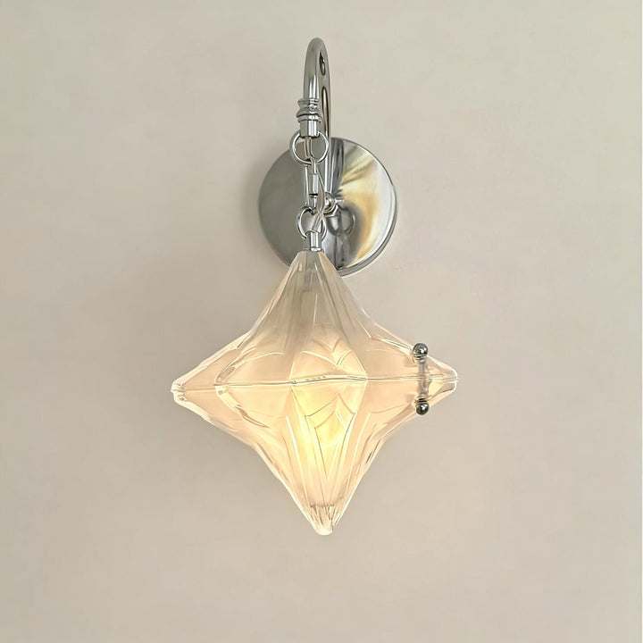 Gracefully suspended like a constellation in the night sky, the Lyra Wall Light by Vakkerlight is a radiant blend of elegance and modern craftsmanship. Featuring a delicately faceted glass shade in a sculptural star-like form, Lyra diffuses a soft, ambient glow perfect for creating an inviting atmosphere. The chrome arm and chain detail add a touch of vintage charm, while maintaining a clean, contemporary silhouette. Ideal for hallways, bedside accents, or reading corners, the Lyra Wall Light transforms any space into a celestial retreat. Discover timeless beauty with Vakkerlight.