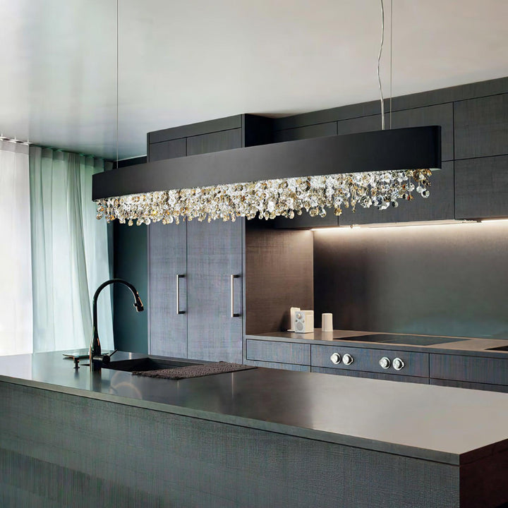Add a touch of luxury and brightness to your dining experience with our Marilyn Modern Crystal Pendant Light. Made with a metal base for stability and adorned with crystal for a touch of opulence. Choose from a variety of colors to match your unique style and elevate any space with its modern linear design. Perfect for creating a warm and inviting ambiance in dining spaces.