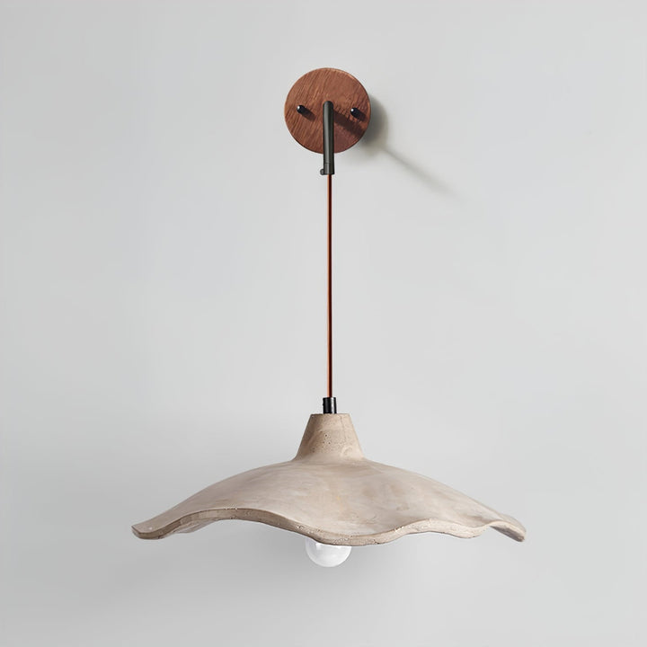 The Vakkerlight Mirella Sconce features a hand-formed microcement shade with soft, flowing edges inspired by natural waves. Suspended from a walnut-accented wall arm, it offers a warm, organic glow—perfect for modern rustic or wabi-sabi interiors.