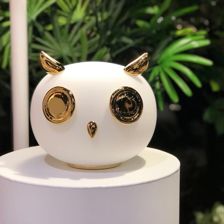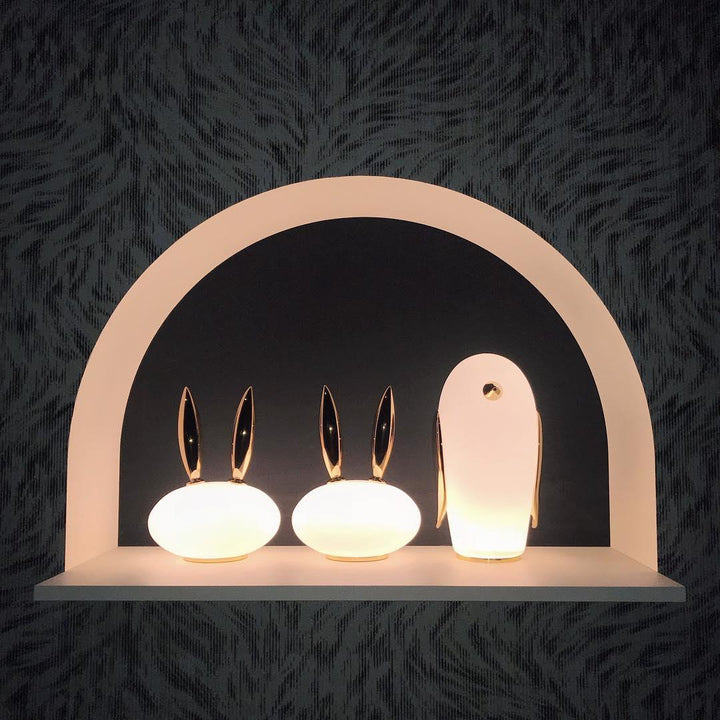 Uhuh, Purr & Noot Noot (owl, rabbit & penguin) are a series of animal table lamps by designer with their very own personalities and characteristics. Rounded, endearing and elegant, they find their place in any kind of interior climate and environment. Their frosted glass bodies, decorated with touches of gold, emit a sunny, heart-warming light glow. Choose your favorite characters amongst a penguin, a rabbit and an owl and enjoy a wonderland of fairy tale characters with heaps of charm!