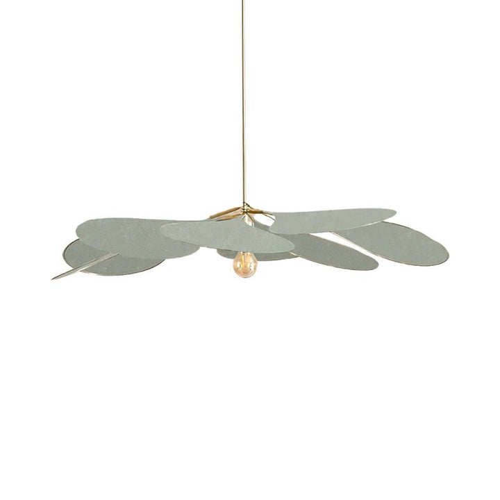 The unexpected combination of metal, and fabric in a floral and airy suspension. To the sleekness of a teardrop-shaped petal, the designer adds an homage to the retro ceiling fans of louvered bedrooms. This petal pendant plays subtly with light, diffusing a soft clarity in the room and delicate shadows on the ceiling.