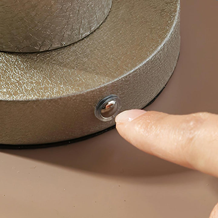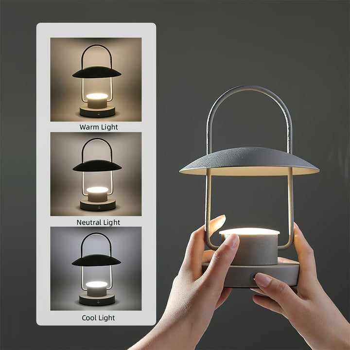 Utilitarian in its inspiration and sophisticated in its execution, the ‘Ray’ portable lamp features a simplified silhouette defined by a cylindrical base surmounted by a wide circular shade, both made of powder-coated metal. A slim handle on top of the lamp makes it easy to transport and move around.