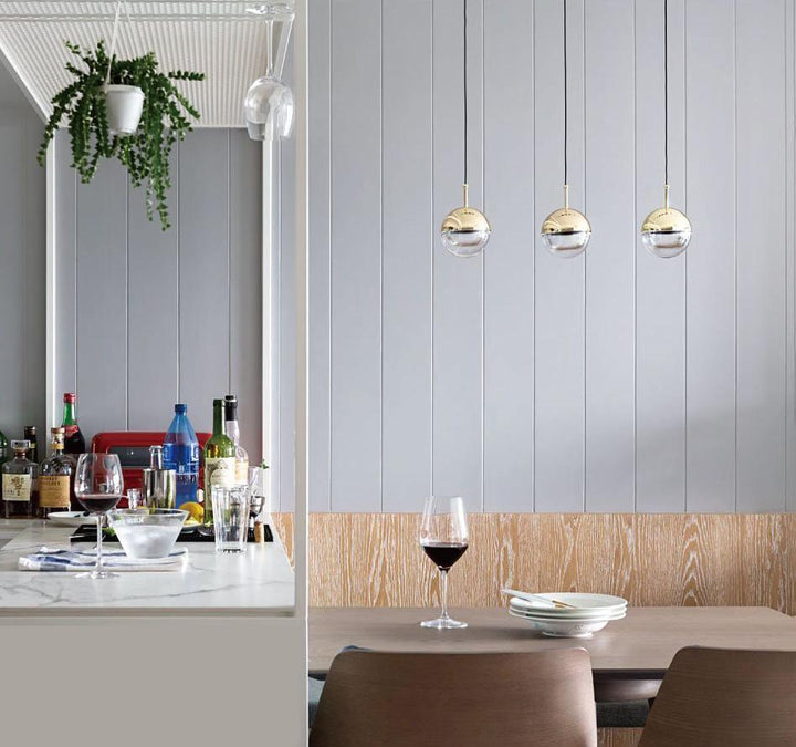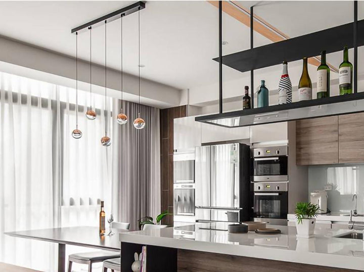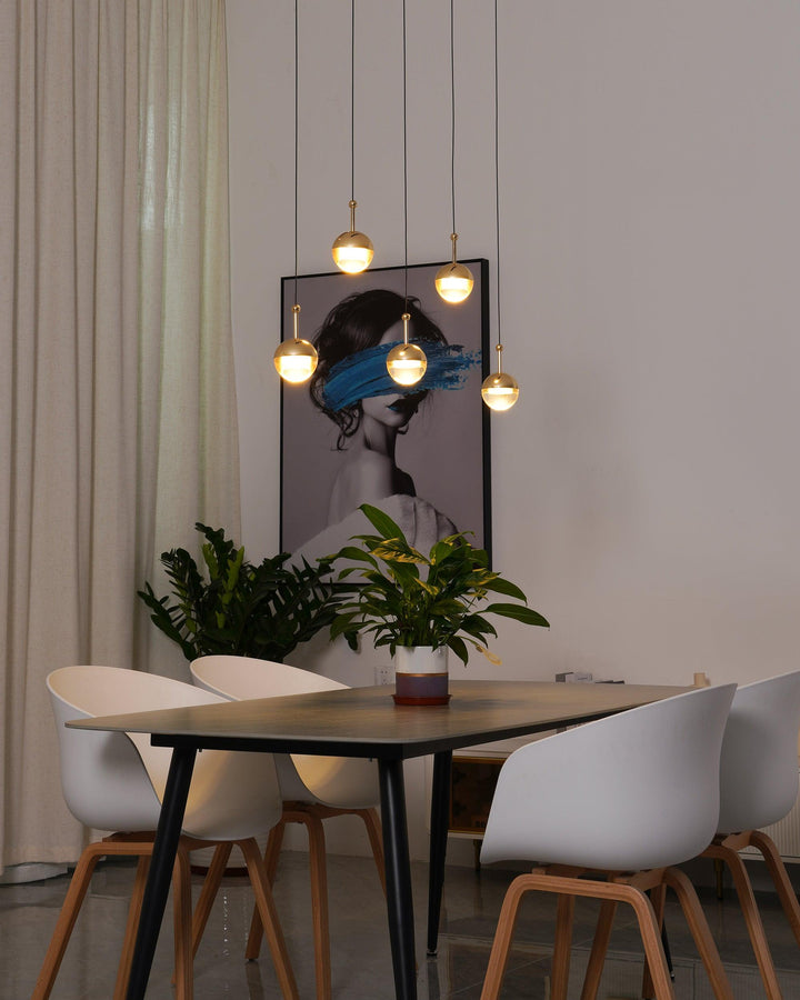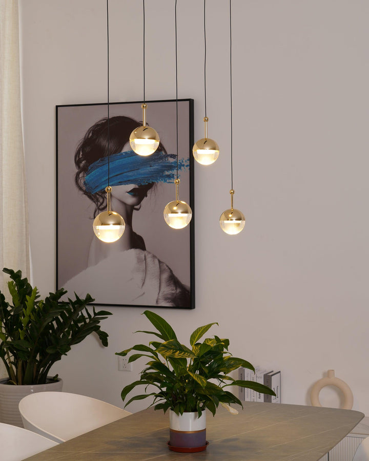 The Restaurant Art LED Pendant Light is a suspended drop light that features a stylish ball made of steel and glass. With its unique half-transparent and half-opaque design, it offers a beautiful contrast that enhances both sides equally. The shade can also be rotated up to 35 degrees to achieve an angled light effect.