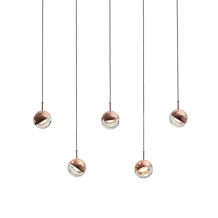 Perfect for any living room or bedroom, this pendant light can be used to highlight a bookcase or a display of objects. It comes in a shiny copper finish with clear glass and includes an LED lamp.