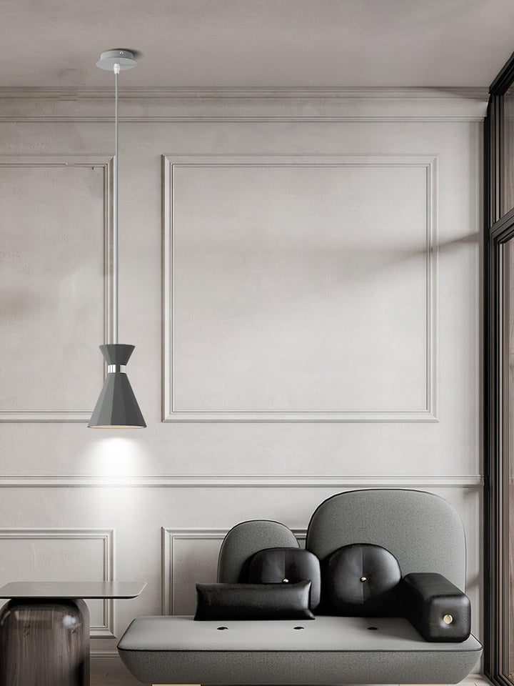 Heavy weight cone shaped pendants of Grey concrete, both with Polished chrome/gold accents, project ample light downward by means of the E27 Lamp lamps provided.