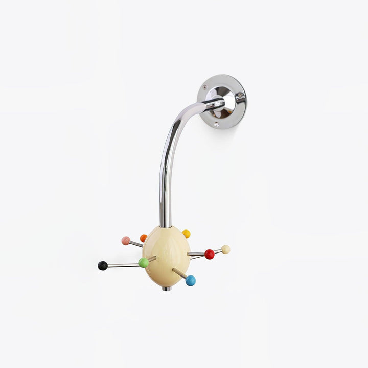 This coat rack is a stylish and functional addition to any space. Made from sturdy metal tubes, it features a large rotating sphere at the end with unique sputnik-like racks in various colors. Stay organized and add a touch of modern design to your entryway or bedroom.